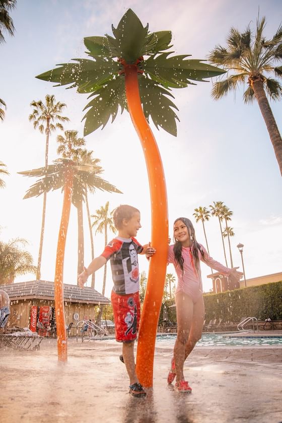 Enjoy Anaheim's top kid-friendly hotel pool with a Splash Zone Area, resort-style heated pool, and spa. Open daily 8 AM - 10 PM for family fun.